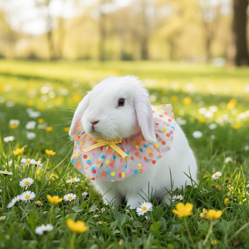 Turn every day into a celebration with our Polka Dot Tulle Bunny Bib. Designed specifically for the delicate frame of a rabbit, this festive collar adds a touch of whimsy to your pet’s wardrobe without the bulk of a full harness or sweater.